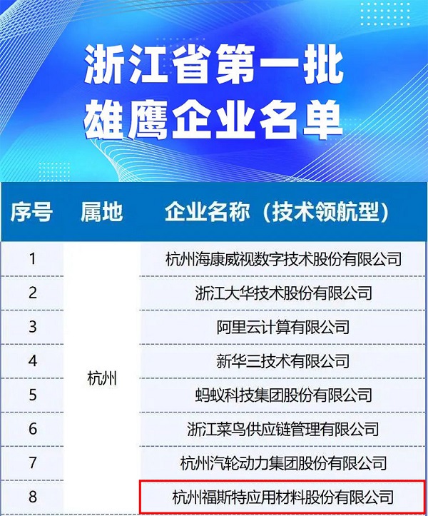 福斯特成功獲評(píng)浙江省首批雄鷹企業(yè)!