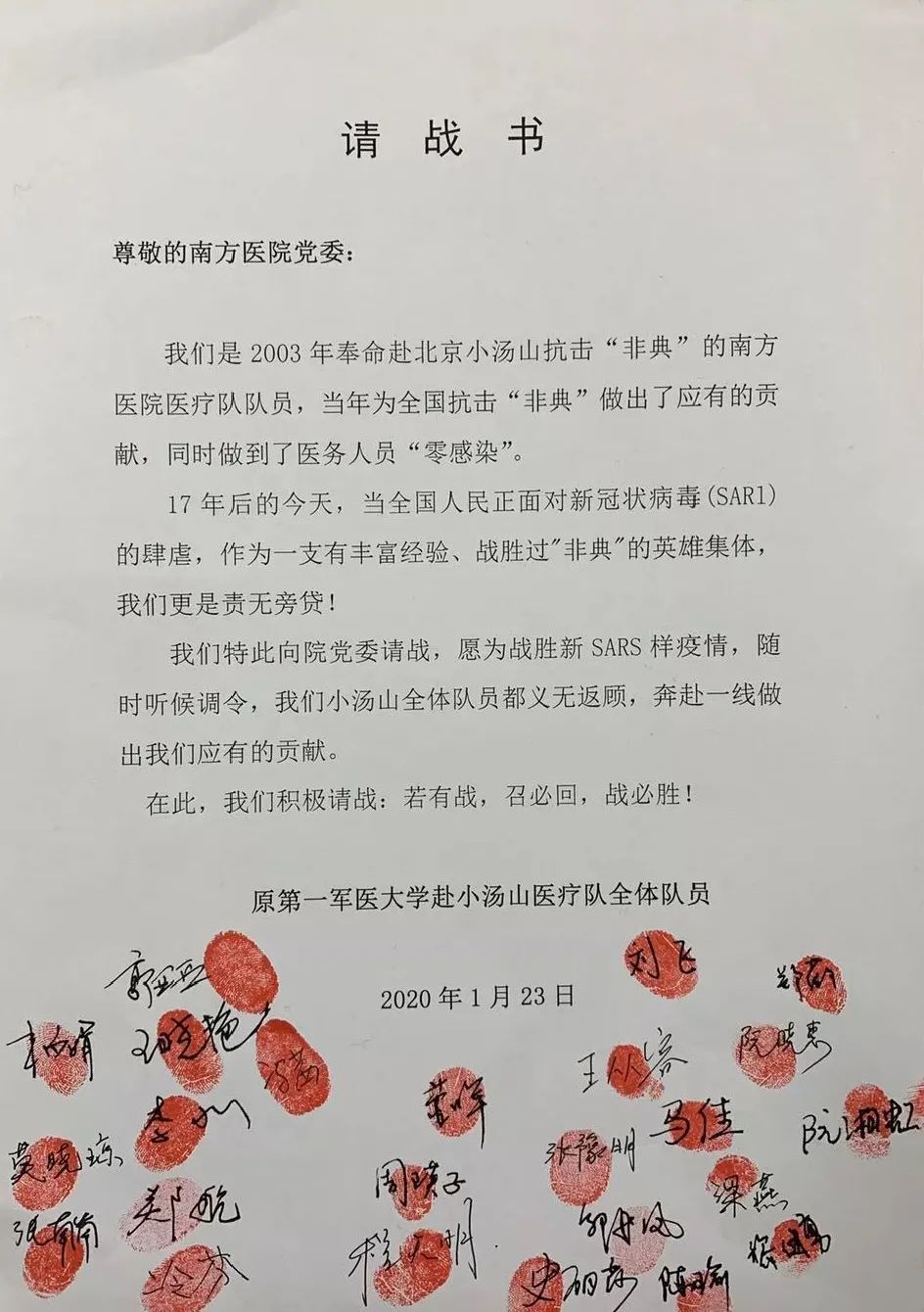 在武漢戰(zhàn)“疫”最吃緊的時刻,各地醫(yī)療隊紛紛主動請纓。非典期間“零感染”的醫(yī)療隊伍——解放軍小湯山醫(yī)院,率先提交了“請戰(zhàn)書”。