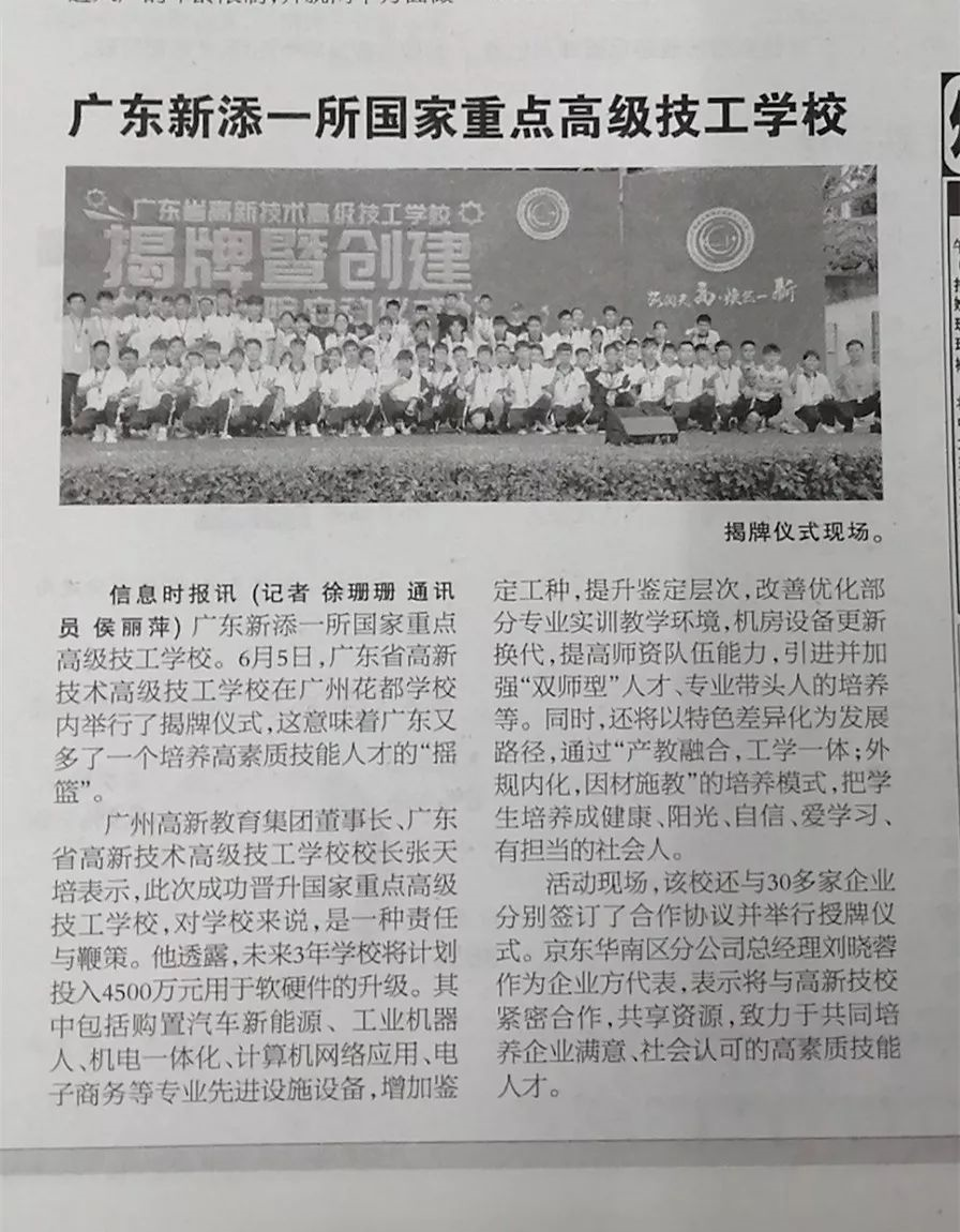 昨天 6月5日,廣東省高新技術高級技工學校舉行升高揭牌儀式(戳這里,精彩回顧),廣東省人社廳領導、評估專家、兄弟院校、校企代表及高新技校近千名師生共同參與、共同見證了廣東省又一所培養高素質技能人才的“搖籃”的誕生。