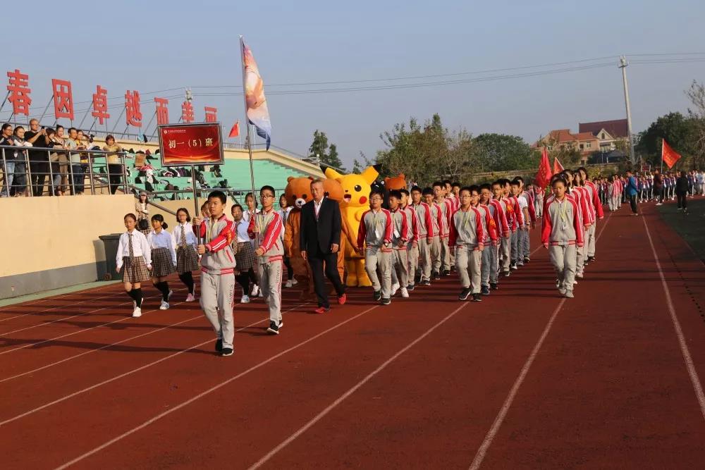 在全體同學的熱切期盼中,在老師們的辛勤付出下,10月24日上午7點,我校隆重舉行第三屆田徑運動會開幕式。理事長肖家興博士、曹躍平校長、黨支部書記潘清、高中部執行校長孫立新、初中部執行校長謝永中、分管德育與安全校長時兆鵬等領導出席了本次開幕儀式。