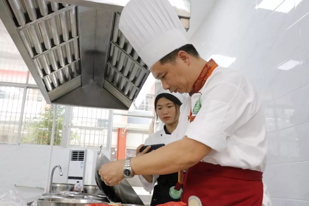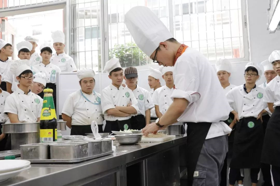 相對于還在學顛鍋,練刀工雕工,揣摩時間火候的同學來說,烹飪老師們之間的PK就可以說是「神仙打架」,同學們唯一的「勸架」方式就是好好看,好好學,別開小差。看老師們認真專注的樣子,收放自如的操作以及比平時放大十倍的氣場,就知道什么叫專業,這里面包含的是一種十足的自信,以及唯美食不能辜負的「態·度」。