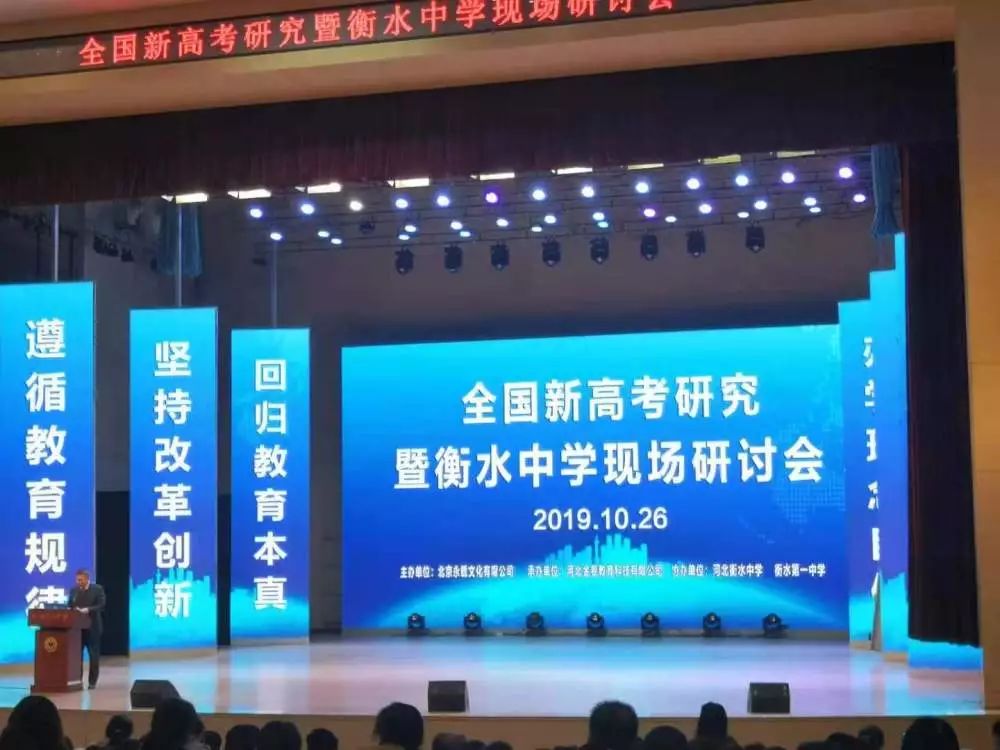 最后,我們聆聽了河北衡水中學副校長康新江有關《衡水新高考實施策略的報告》,他在報告中提出,新課改是挑戰與機遇并存的契機,對衡水中學來說是學校發展良好的動力,他認為,衡中的優勢在先進的辦學理念,嚴格的管理制度。他深信衡水學子在“大五觀”的引領下,定能在2020年的高考中勇奪桂冠,再創佳績。