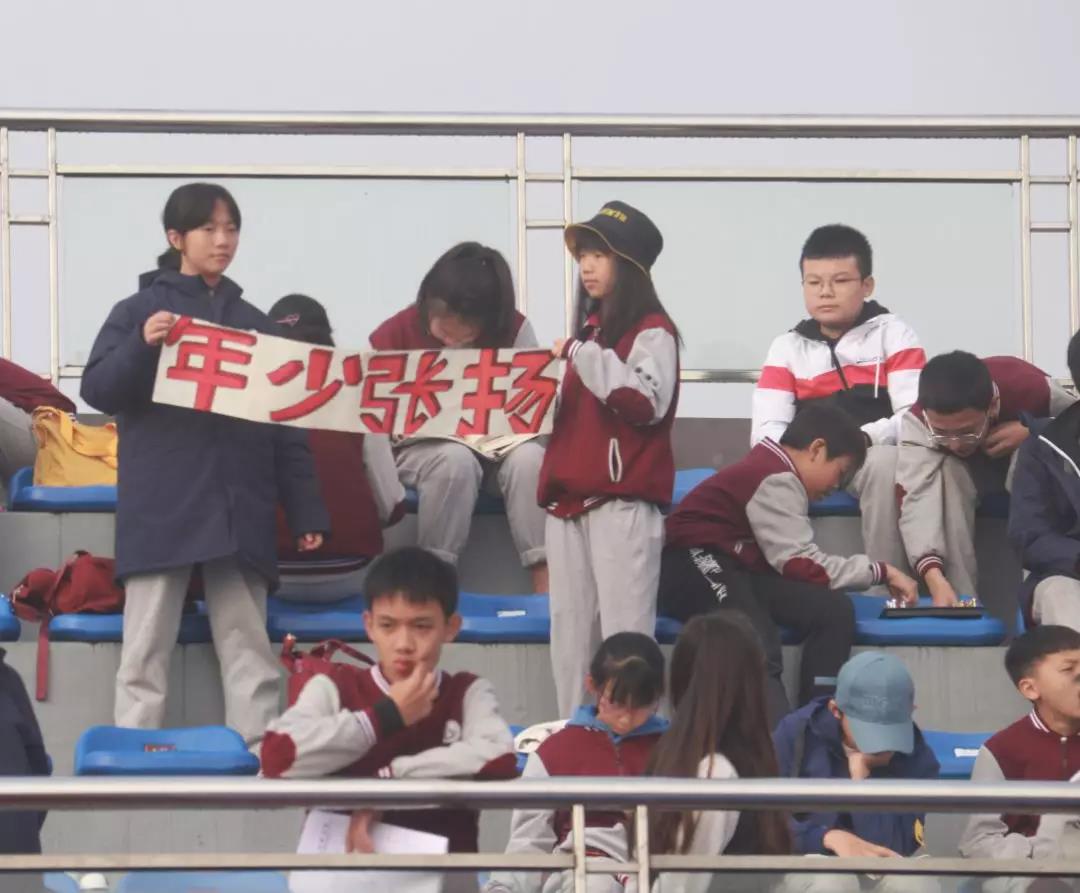 高高的看臺(tái)上,同學(xué)們拼盡全力高聲吶喊,為場(chǎng)內(nèi)的同學(xué)們送上最有力的祝福。扛著班旗的身影矯健,鮮紅的旗幟在風(fēng)中獵獵作響。班主任們守在終點(diǎn),等待著那一道飛奔而來的身影。