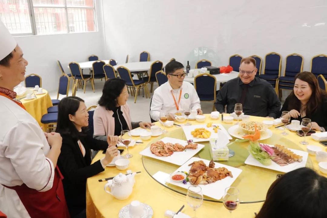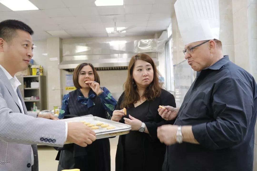 參觀過程中,來賓們對我校中餐烹調及面點制作課堂表現出強烈的興趣,Mr.Stuart表示,這樣的課堂氛圍非常好,學生以小組為單位,大家相互協作,凝結智慧,制作出的作品都是獨一無二的
