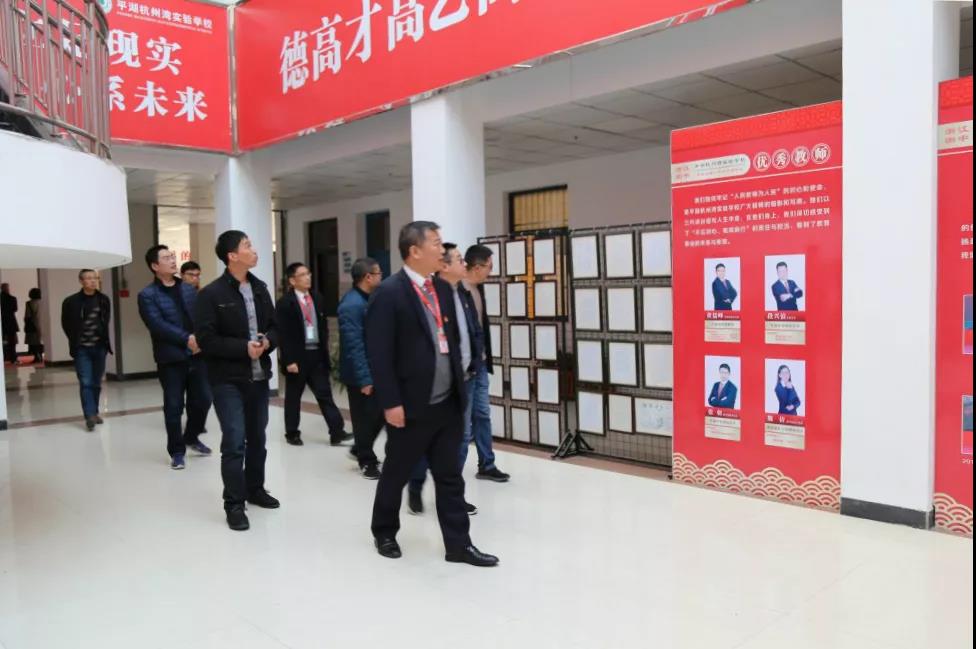 隨后,領導們來到了行政樓,行政樓一樓的文化墻布置深深的吸引住了他們,在他們看來,我們學校的每一面墻都會說話。播種一種行為,收獲一種習慣,正是學校這種“潤物細無聲”的文化播種,讓浙江衡中的孩子知禮、陽光、自信。余新中學的領導和老師還在十樓會議室詳細地聆聽了謝校長對學校辦學宗旨、辦學理念、三大特色的詳細介紹。余新中學的胡校長也對我校辦學特色給予了高度的評價。
