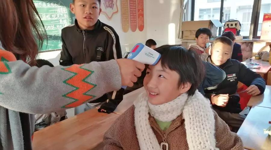 學校還給每個班分發了電子智能體溫計。班主任老師每天早、中、晚三次為每個孩子測量體溫,如有特殊情況,立即記錄并上報。