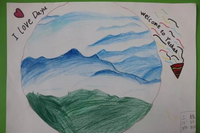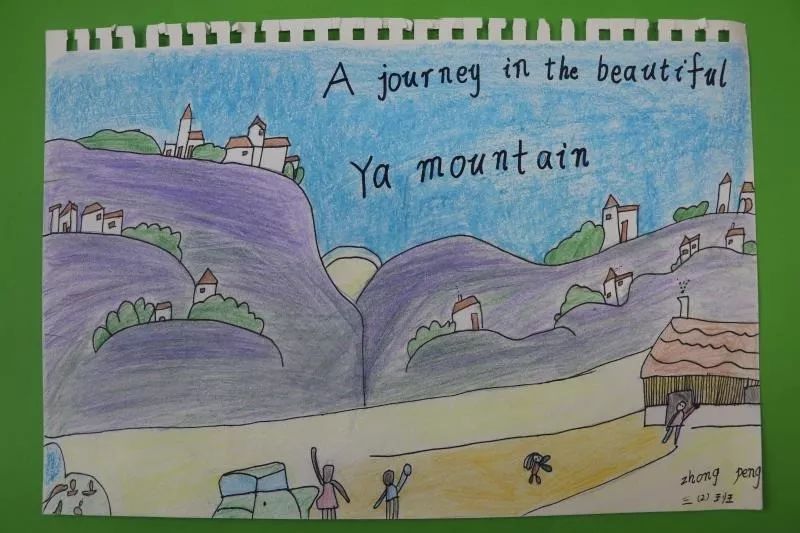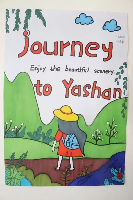 同樣的,為了準備研學課程,孩子們還用英語認真的做了丫山海報。讓我們來看看大余衡實三年級孩子們的作品吧!