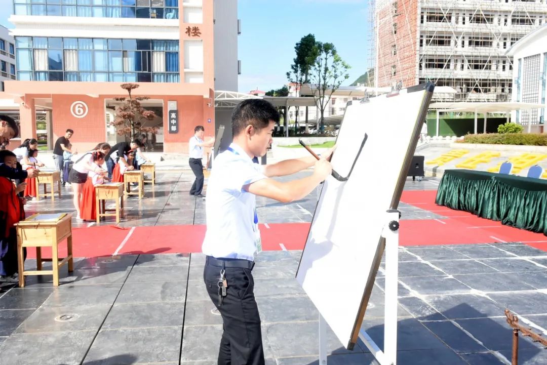 碧空如洗,秋高氣爽。為弘揚(yáng)中華傳統(tǒng)文化精神,9月16日上午,大余衡水實驗學(xué)校隆重舉行“開蒙啟智 習(xí)禮明德”一年級新生開筆禮儀式。大余衡水實驗學(xué)校校長王躍平,副校長彭艷華,小學(xué)部校長鐘小娟,校長助理簡東英,小學(xué)部教務(wù)主任謝林燕、副主任黃婷,以及一年級全體新生家長和老師共同見證了此次莊重的開筆禮儀式。