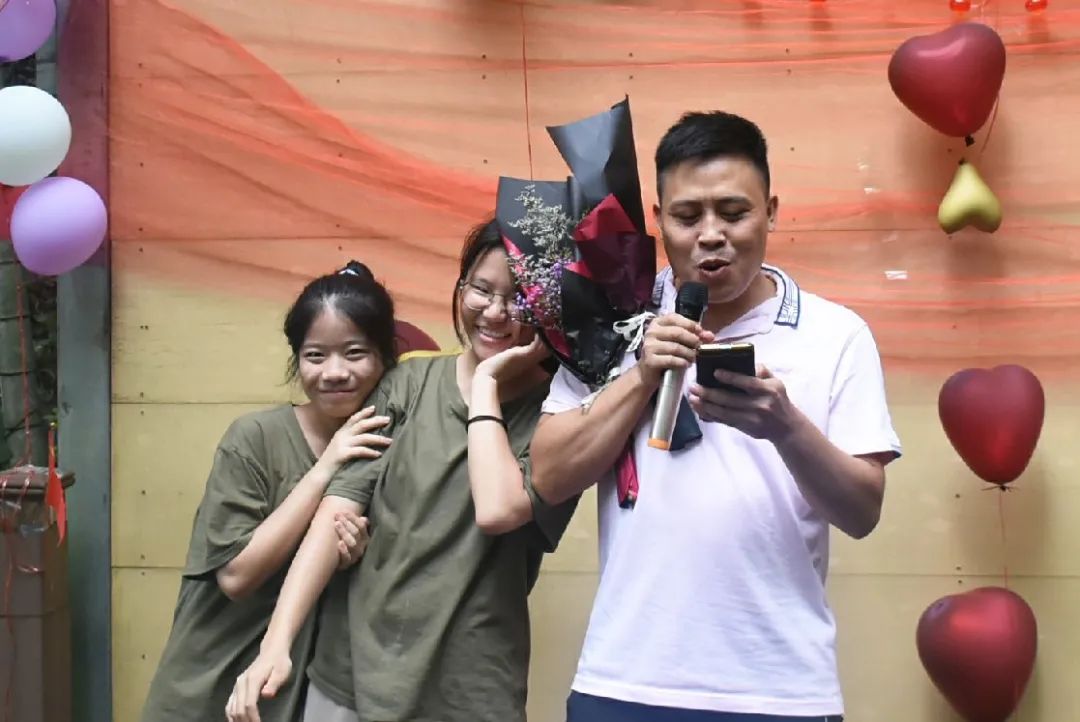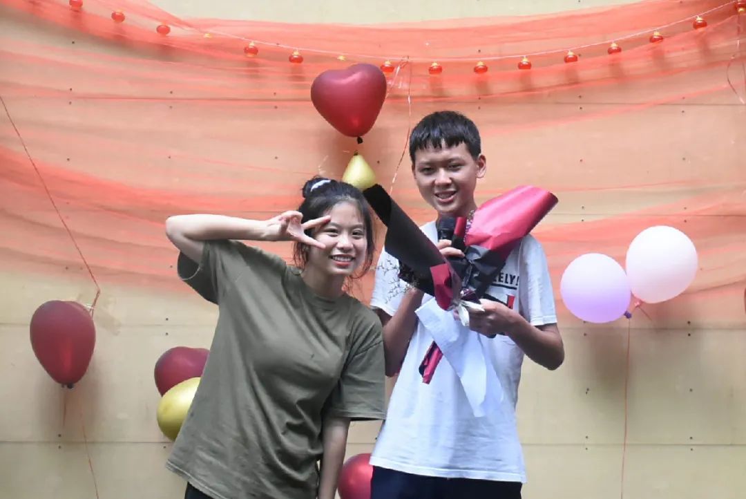 吃飽喝足便是節(jié)目表演環(huán)節(jié),老師的《日不落》活躍氣氛,現(xiàn)場成為打歌舞臺,輕快酷炫的rap讓大家飽享耳福,搞笑有趣的廣西版《有何不可》讓大家捧腹大笑,熟悉的歌謠使得在底下的觀眾情不自禁地跟唱起來,小伙伴們組成一個個小團(tuán)隊,在舞臺散發(fā)著獨具特色的光芒,歌聲夾著尖叫聲,打call聲響徹丫山,送花合影讓我們更親密了,每個人的臉上都洋溢著笑容,負(fù)責(zé)接送我們的劉老師最后也按捺不住了,唱起了動聽的經(jīng)典歌曲《濤聲依舊》和《橋邊姑娘》。