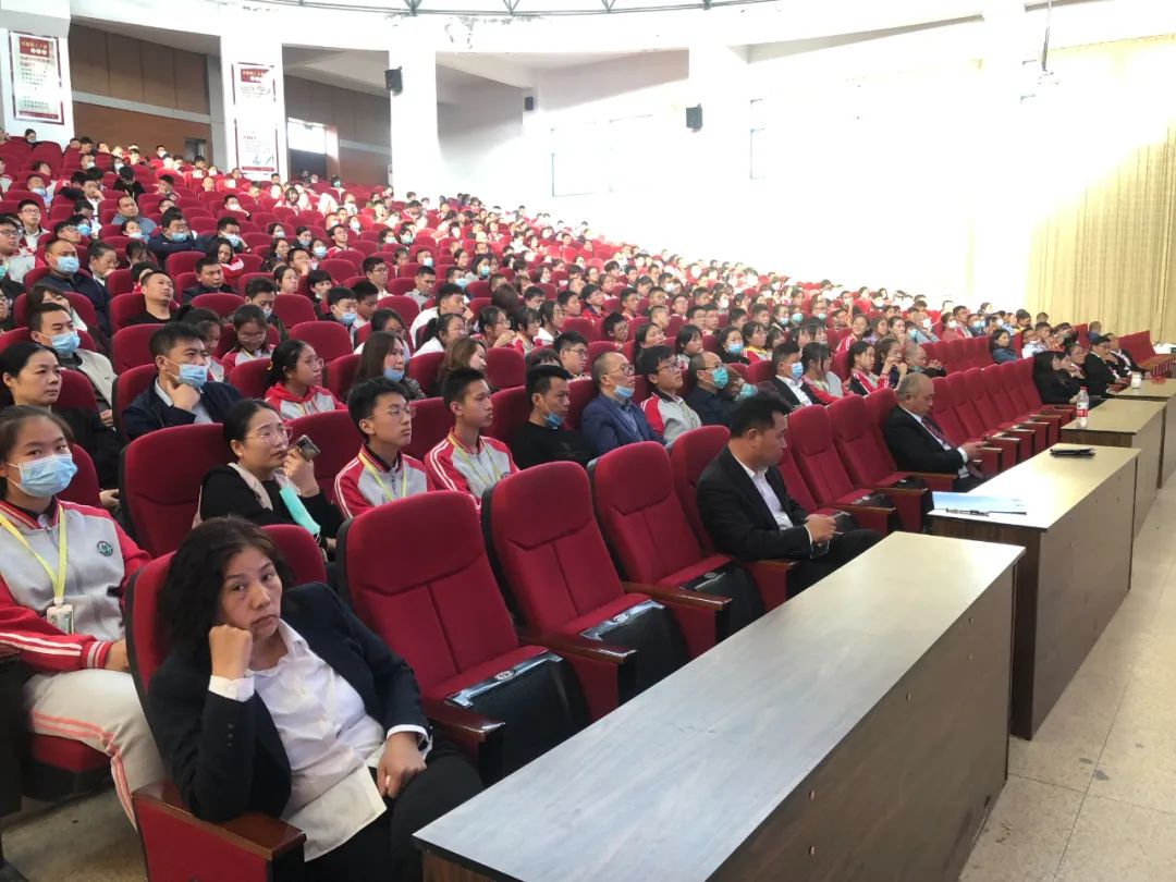接著,初中部執行校長謝永中簡要介紹了首屆中考成績和學生錄取情況后,就中考設置、考試要求、學生努力方向、家校合作等四大塊內容進行了解讀與強調。謝校長和同學們一起精打細算了課程賬、考試賬、時間賬,并就高一直升班政策進行了解釋說明,勉勵大家只爭朝夕,不負韶華,樹立目標,奮斗到底。