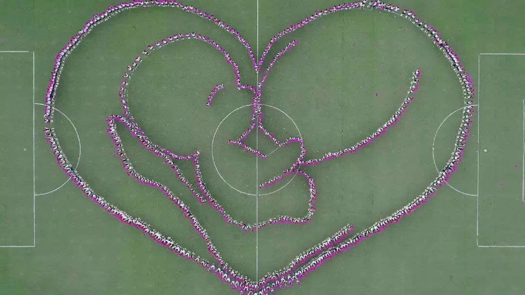 圖|高新技校千名女生與母乳愛志愿服務隊共同演繹的千人舞Ending造型