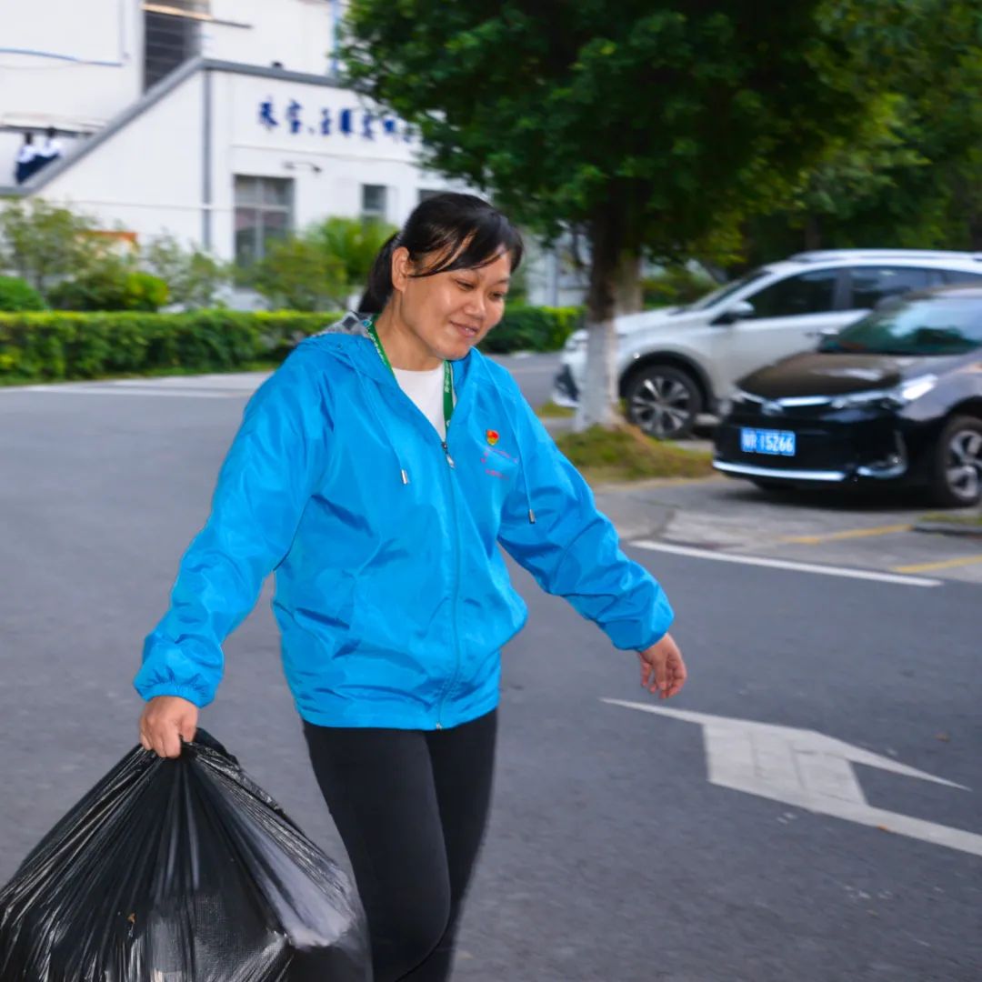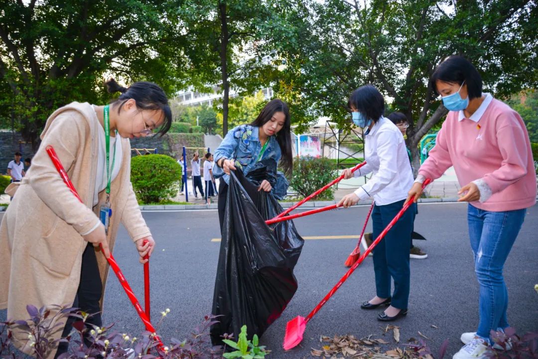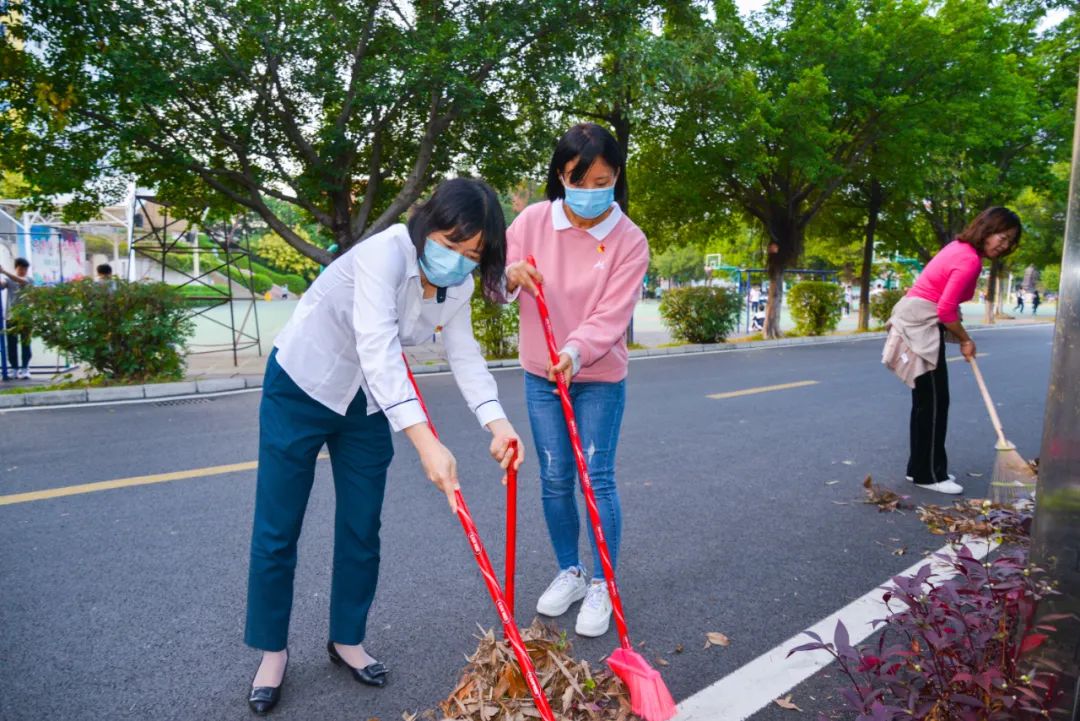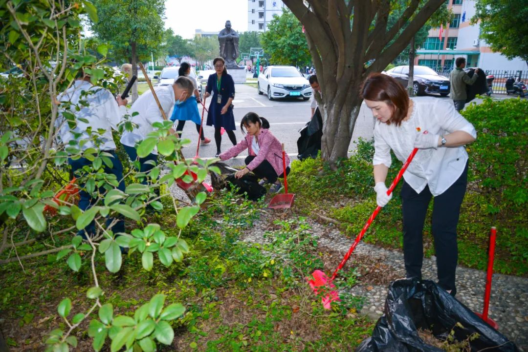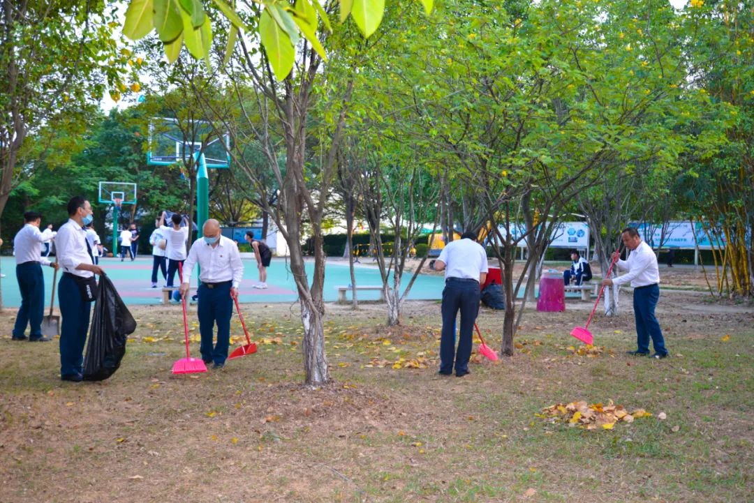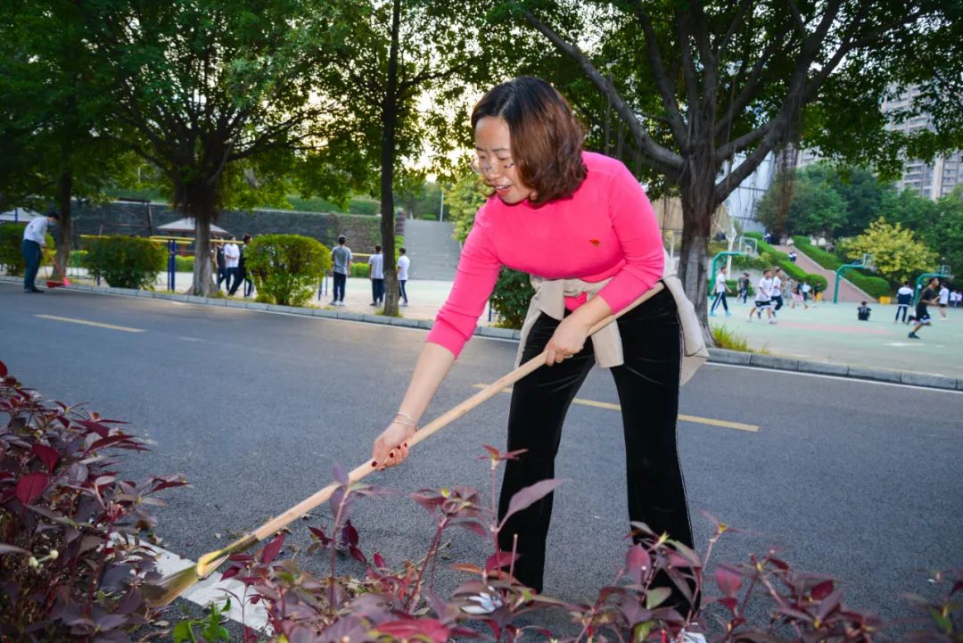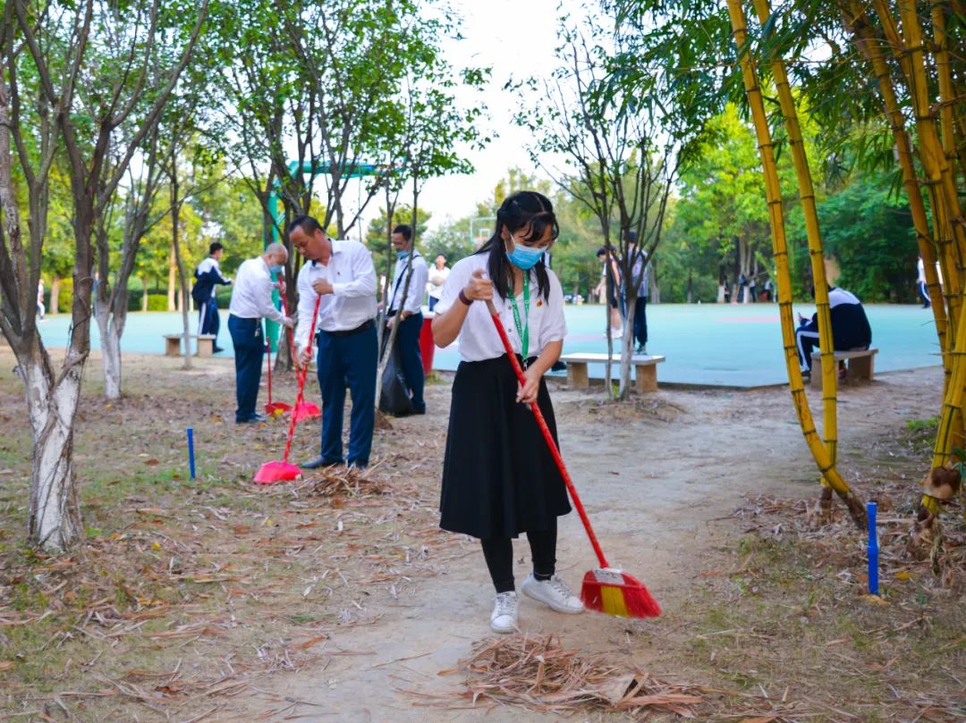 黨員們佩戴黨徽,情緒高漲,熱情飽滿,清理中堅(jiān)樓小樹林及厚德大道等區(qū)域綠化帶中的落葉,不放過任何死角,大家勞動(dòng)的身影猶如一道亮麗的風(fēng)景。