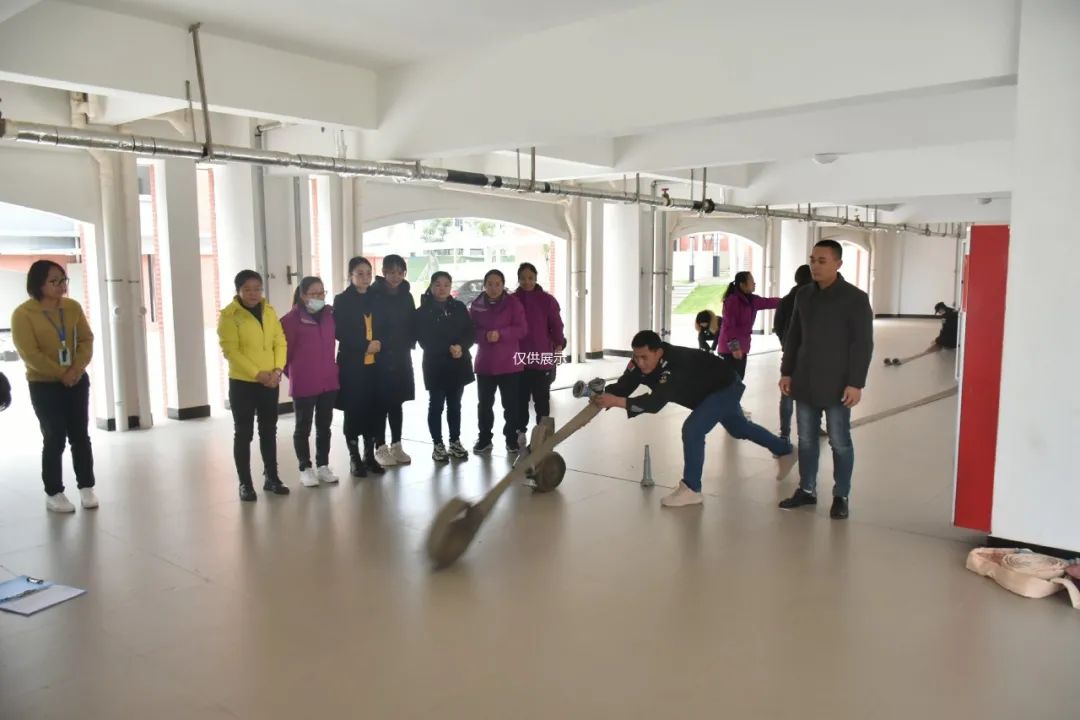理論知識過關(guān),接下來消防志愿者團隊就開始實際演練滅火器的使用。
