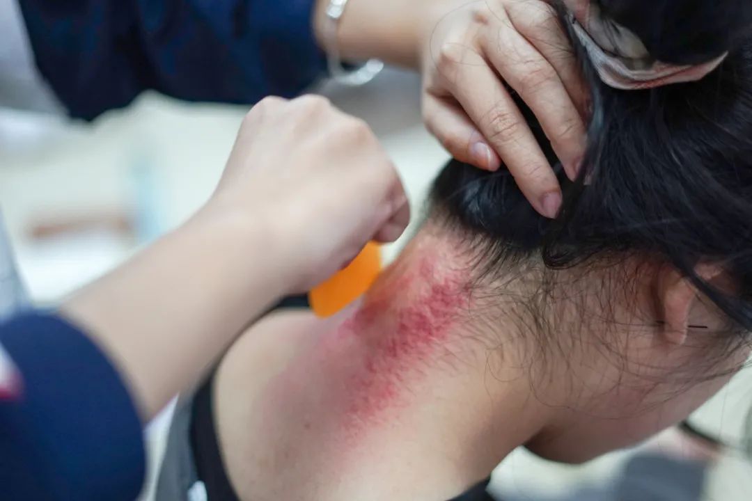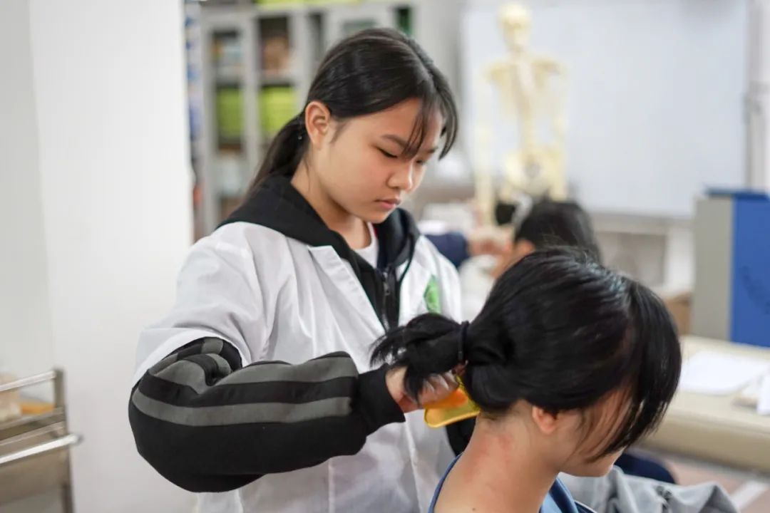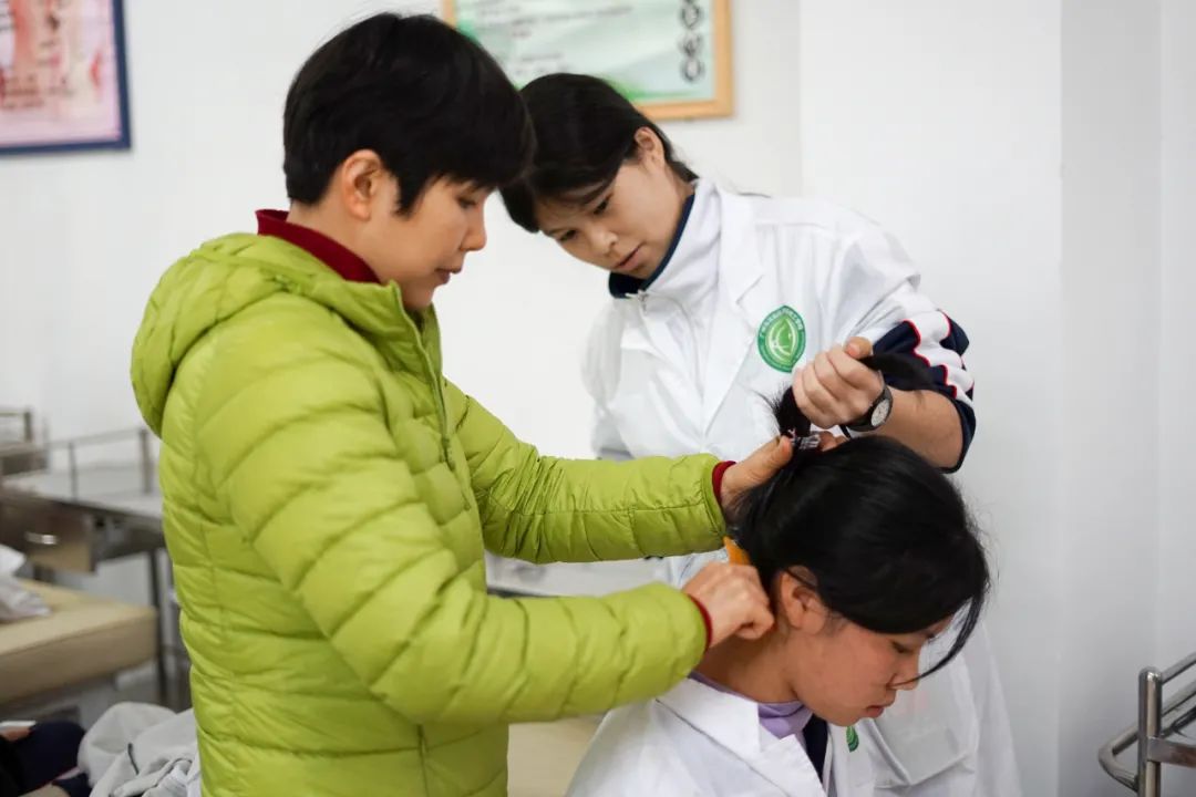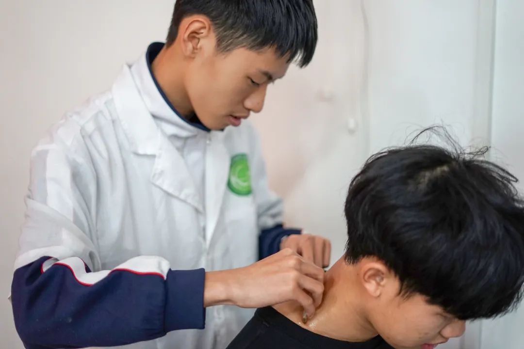 本次課堂分別在階梯1室以及中醫理療實訓室進行,根據課程進度,19級同學學習刮痧課,20同學學習艾灸課。