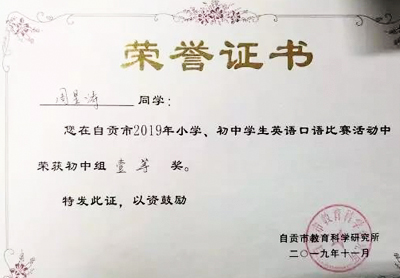 川貢衡川,我校學子喜獲自貢市初中生英語口語比賽一等獎