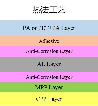 采用特殊的鋁箔防腐蝕處理技術(shù)及先進(jìn)可靠的熱法工藝制程生產(chǎn)的鋰電軟包用鋁塑膜,異于采用膠黏劑粘合的干法工藝,其工藝先進(jìn)穩(wěn)定,耐水汽透過(guò)性能更好,抗腐蝕、耐熱性能更佳,沖深不易卷曲。更適用于對(duì)封裝耐久性要求更高的鋰電池的使用需求。
